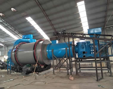 燃料可適應白煤、煙煤、煤矸石、油、汽,能烘20-40mm以下塊料、粒料、粉狀物料。比單筒烘干機減少占地面積60%左右、土建投資降低50%左右,方便安裝。出料溫度小于60度,可直接進料庫,無需進冷卻棚冷卻。