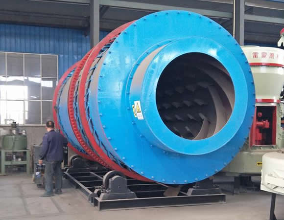 該機的外部表面積比單筒回轉式烘干機減少30%以上,并且外筒對內筒有保溫隔熱作用,外筒表面溫度低,熱損失少,在節能的同時,大大改變了勞動環境和勞動條件。多種揚料板設計,角形揚料板與萬字揚料板的結合,使物料與熱煙氣交換,減少了烘干機筒內風洞產生的機理。物料初水分,終水分確保以0.5-1%以下,是水泥廠礦渣粉和干粉砂漿生產線等各種烘干工程理想產品。
