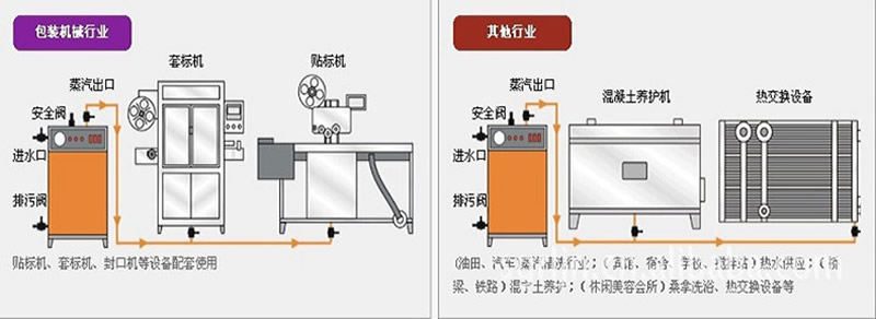 食品、化學工業:聚合、縮合、蒸餾、熔融、脫水、強制保溫等;油脂工業:脂肪酸蒸餾、油脂分解、濃縮、酯化、真空臭等反應釜加熱、合成纖維工業:聚合、熔融、紡絲、延伸、干燥等;紡織印染工作:熱定型輥筒加熱、烘房加熱、熱容染色等;非紡織工業:無紡布等;飼料工業:烘干等;塑料及橡膠工業:熱壓、壓延、擠壓、硫化成型等。造紙工業:干燥、波紋紙加工等。木材工業:多合板、纖維板加壓成型、層壓板加熱、熱壓板加熱、油壓機控溫、木材干燥等。建材工業:石膏板烘干、瀝青加熱、混凝土構件保養等;機械工業:噴漆、印花烘干等;